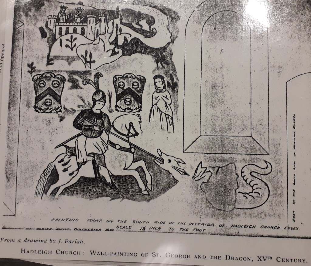 I did find a version of St George and the Dragon here: https://reeddesign.co.uk/paintedchurch/broughton-st-george.htm from a church in Broughton, Buckinghamshire, just to give a sense of the Hadleigh picture.