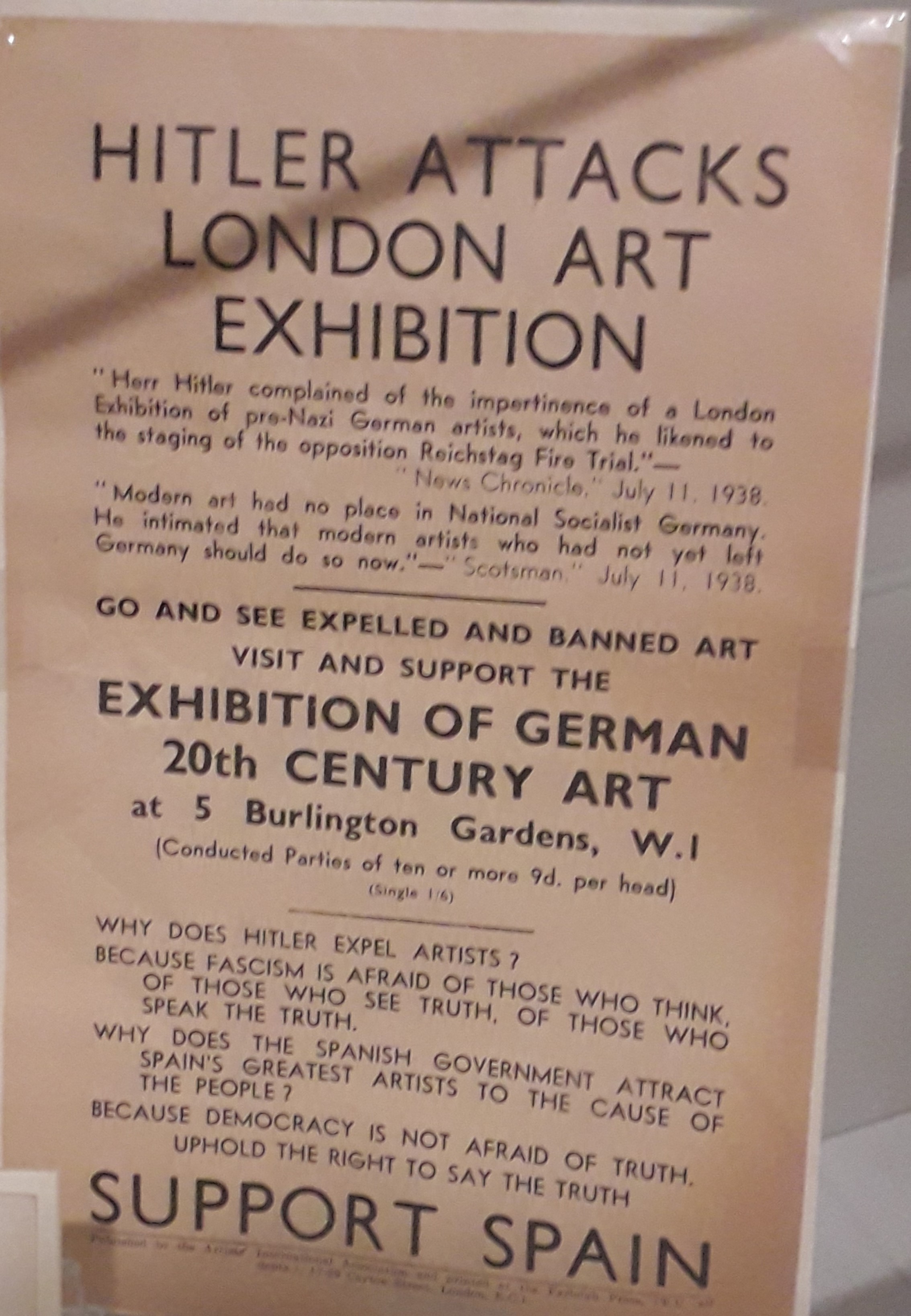 That was in 1930 and, as we know, the right wing in Europe increased its power and domain throughout the decade particularly with Hitler’s Nazi regime in Germany. Quite by chance, I discovered in the Archive at Tate Britain, the leaflet on the left here: