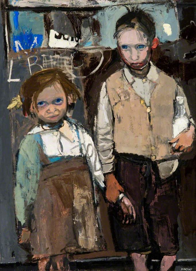 And the child, protected by the mother certainly, but with a distinct – if perhaps uncertain – individuality that recalls Joan Eardley’s portraits of children such as “Brother and Sister” [1955]: