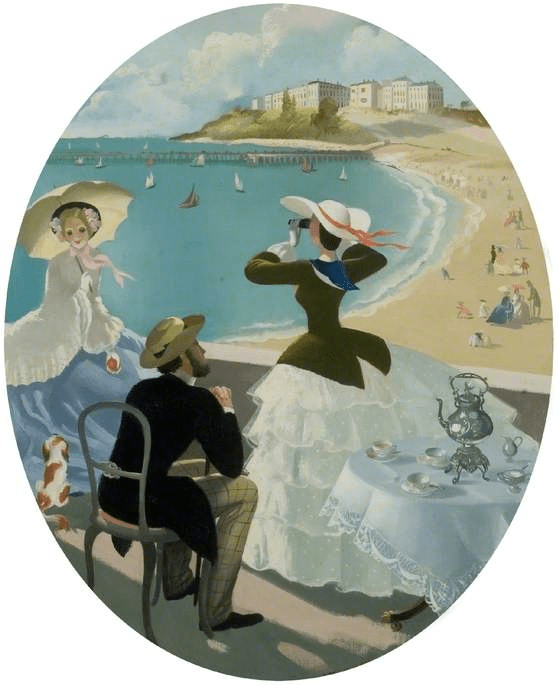 “Promenade Scene ‘Old Southend'” by Anna Zinkeisen [1930s; artuk.org; Beecroft].